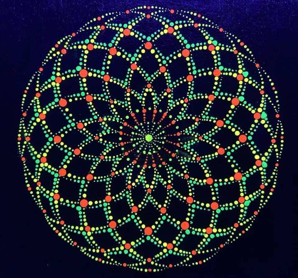 I love order and symmetry in my designs. Laying out the designs on canvas with a compass and ruler is a very fun part of my process! The tighter the layout, the better the art will be.